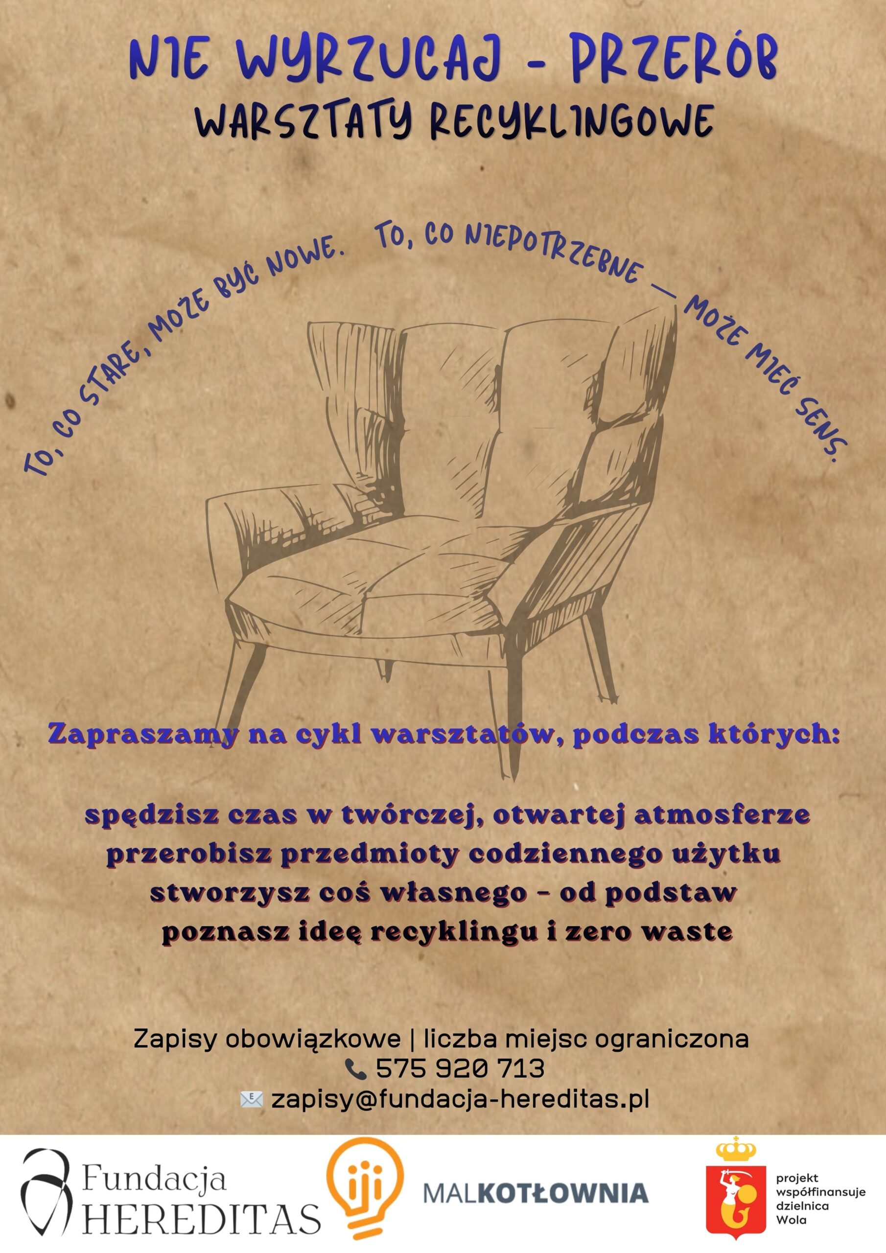 Projekt rozwija także ideę „rzeczy, które trwają” poprzez cykl warsztatów recyklingowych.