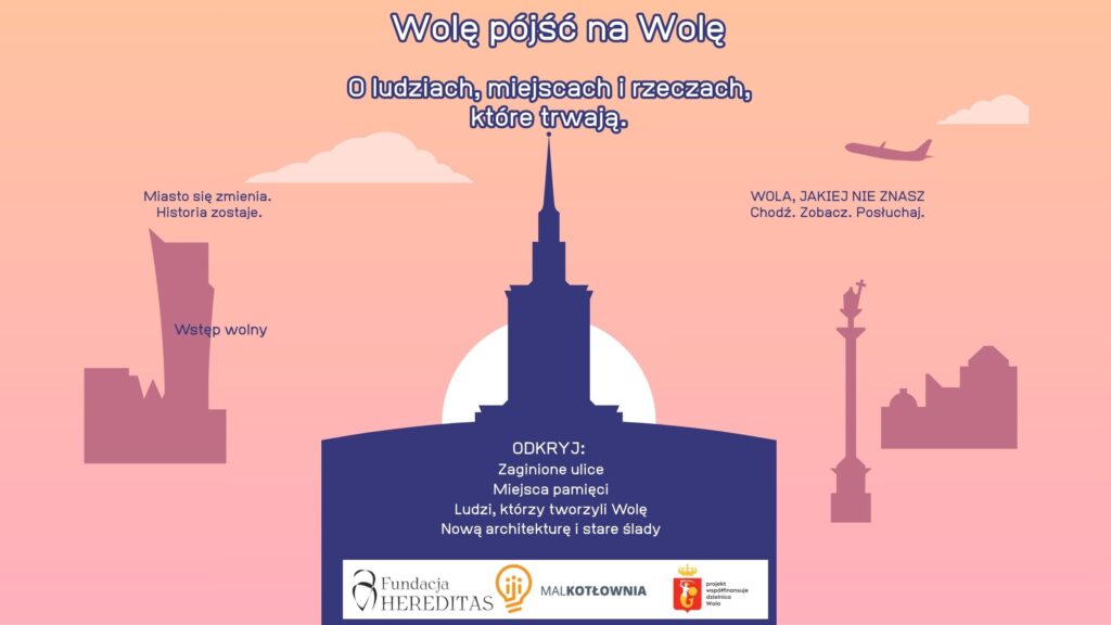 „Wolę pójść na Wolę” to cykl wydarzeń kulturalno-edukacyjnych, które pozwalają odkryć jedną z najbardziej dynamicznie zmieniających się dzielnic Warszawy w zupełnie nowy sposób. Zapraszamy do wspólnego spacerowania, słuchania i doświadczania miasta – poprzez historie ludzi, miejsca pełne znaczeń oraz ślady przeszłości obecne w codziennym krajobrazie Woli. Projekt skierowany jest do mieszkańców i wszystkich osób zainteresowanych historią, kulturą i współczesnymi przemianami miasta.